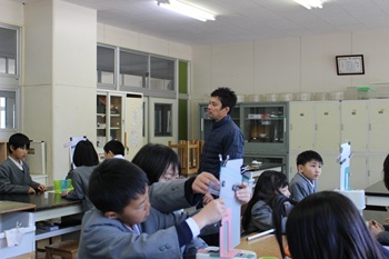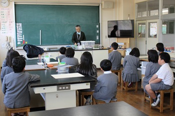 6年生12名を対象に「私たちの生活と電気」をテーマとした出前授業を実施しました。講師は、基幹教育部門 理数総合科学分野の磯谷嘱託准教授が務め、身近な機器に使われる電磁石の仕組みを体験的に学ぶことを目的としました。