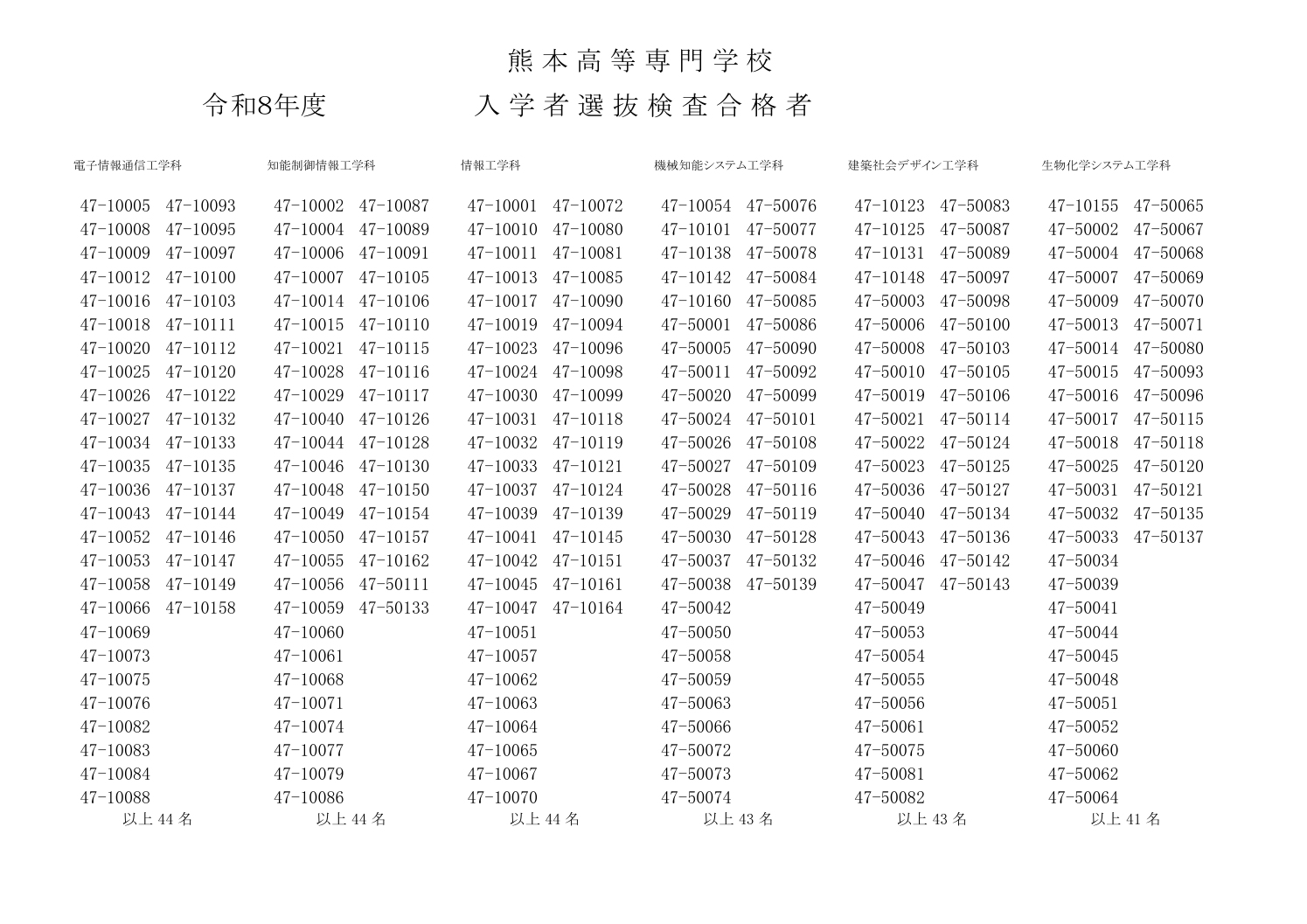 令和8年度 本科入学者選抜検査 合格者については、令和8年2月18日(水) 発送の文書で、合格者本人に合格通知書を郵送します。 また合格者の受験番号を、同日午前10時、両キャンパスに掲示するとともに、このページに掲載します。