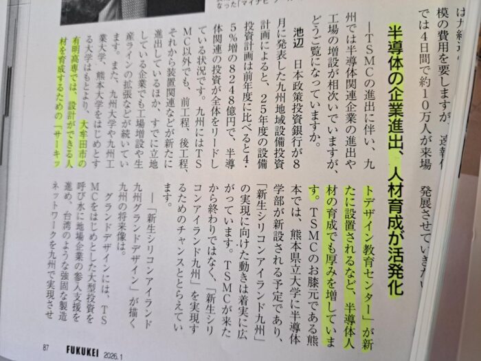 ふくおか経済、2026年1月号で、九経連の池辺会長(九電会長)の言葉として有明高専サーキットデザイン教育センター(CDEC)が紹介されました。