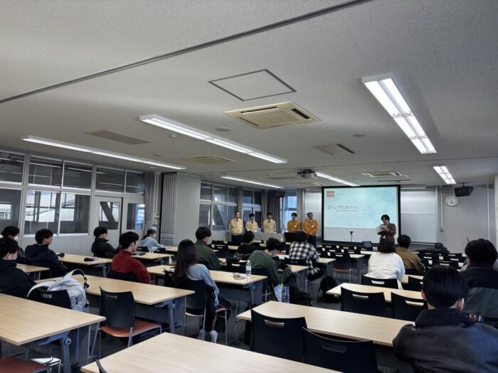 令和7年12月5日(金)は、半導体の前工程について、12月12日(金)は半導体の後工程について、ローム・アポロ株式会社の皆様(有明高専OB含む)に動画等を多用してわかりやすく説明頂ました。授業で学んだことと実践がつながって、活発に質疑が行われました。