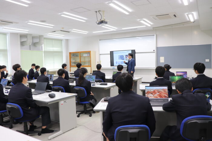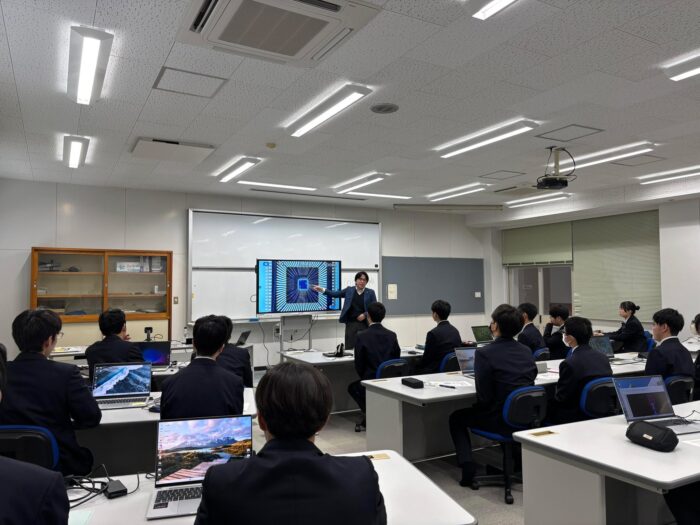 令和7年12月8日(月)、COMPASS5.0半導体分野プロジェクト実践校の有明高専石川教授が、熊本県立水俣高等学校の半導体情報科1年生と電気建築システム科電気コース2年生向けに、株式会社ジーダット(外部サイトへリンクします)様の半導体設計用 CAD/EDA ツール「SX-Meister」を用いてLSI試作(インバータ)を行うサーキットデザイン教育講座を実施しました。