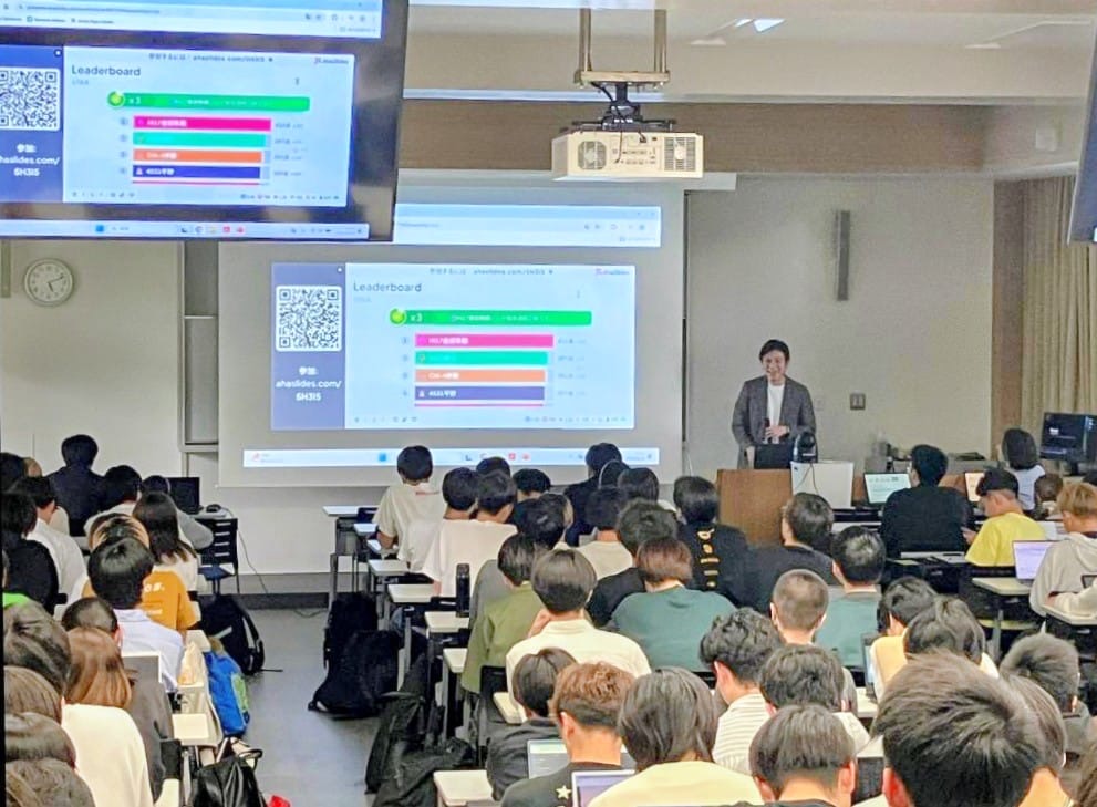 また、講義の中では、自身のスマートフォンを利用し、各自で選択肢から答えを選んで回答を送信し、早さと正確さを競うタイムトライアル形式のワークに参加しました。