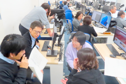 前半は、両キャンパスをWeb会議システムで接続し、『「つづる」から「使える」へ データ活用のためのエクセル基礎』と題して、「1セル1データ、1行1レコード、1シート1テーブル」「入力データを明確にする」「不要な空行・空列を入れない、表の折り返しはしない」「入力間違い・表記ゆれを防止する」など、エクセルデータ作成時の注意点を解説しました。