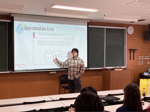 短期留学生は今回6研究室に分かれ、指導教員のもとで約3か月間、プロジェクト研究に取り組みました。12月中旬から冬休み前にかけては、所属研究室の学生らが聴講する中で成果報告会を実施しました。短い期間ではありましたが、研究内容において優れた成果をあげただけでなく、プレゼン資料の構成や発表の進め方なども含め、本校学生にとって大いに刺激となる発表となりました。